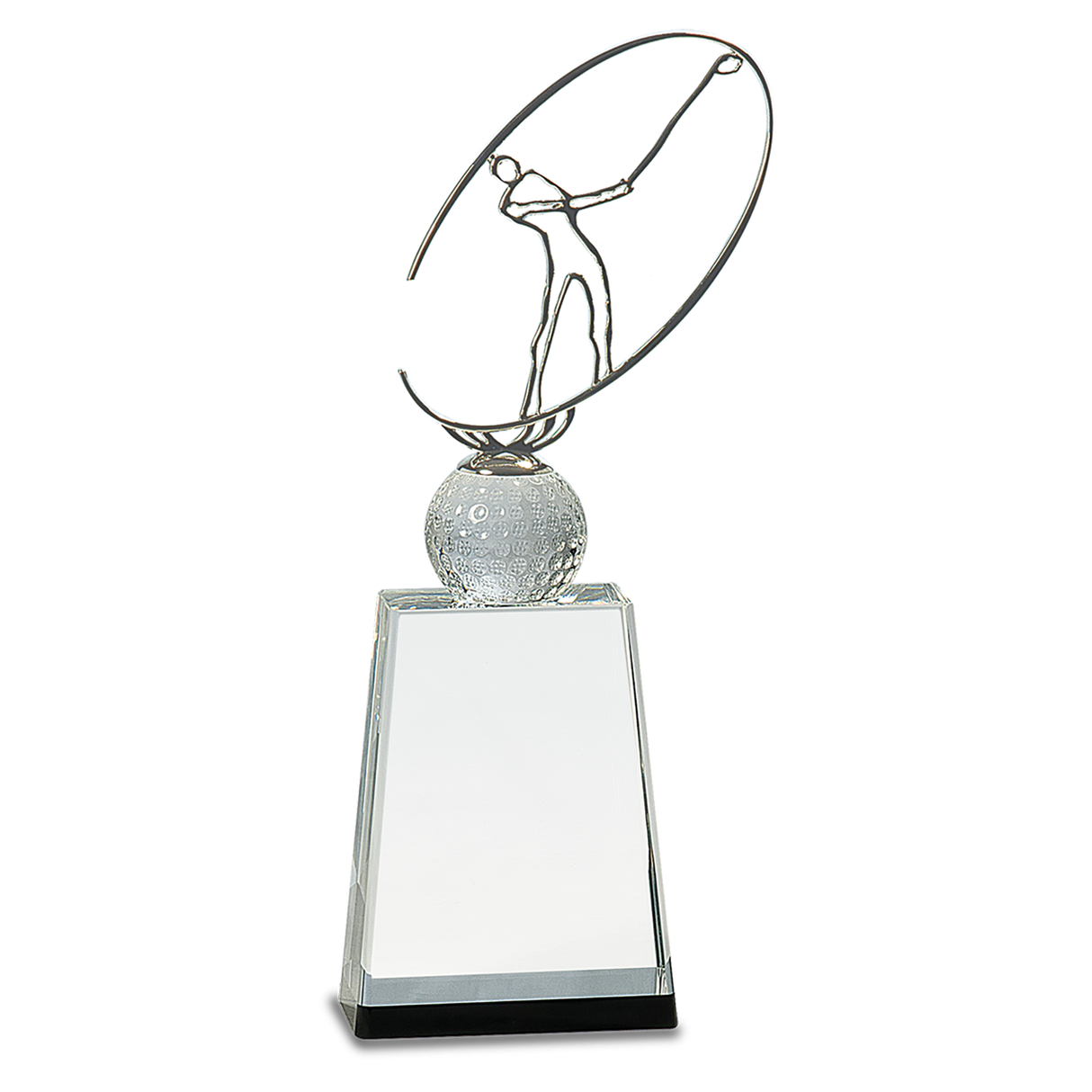 Crystal Golf Awards with Silver Metal Oval Clear Pedestal