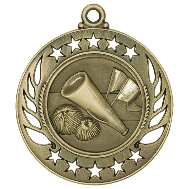 These Antique Cheerleading Galaxy Medals are the perfect way to honor top cheerleading performances. Premium antique finish gives them a classic look that appeals to the cheerleading community. Perfect for gifting or displaying as a memento of an amazing feat.