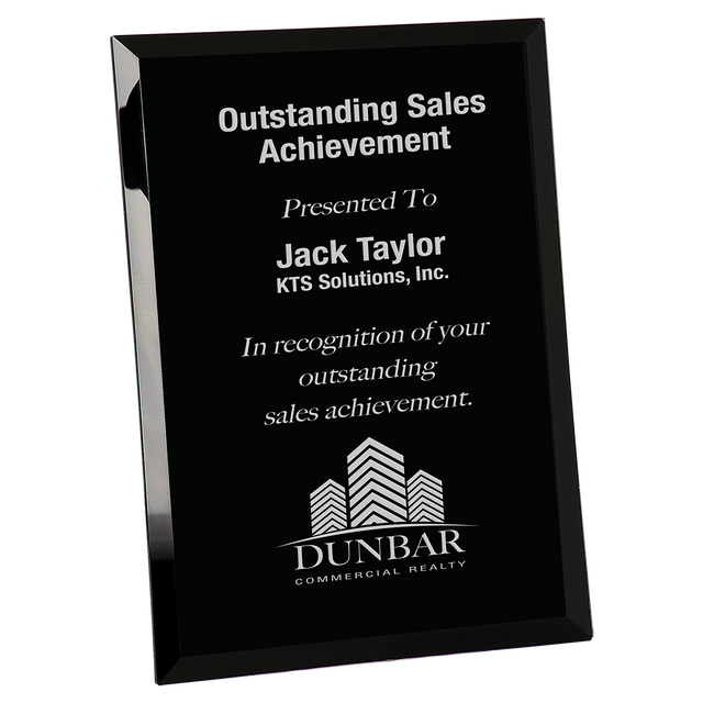 Honor and recognize exceptional achievements with this magnificent Black Glass Mirror Plaque. The sleek black design, combined with the mirrored surface, creates a modern and sophisticated look that is sure to impress.